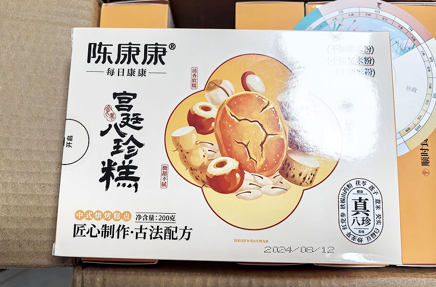 买了陈康康八珍糕,购买原因就很简单,配料表吸引我买的。总共买了三盒,现在吃剩下两块了。这款八珍糕有很多亮点:古方新制:精选山药、茯