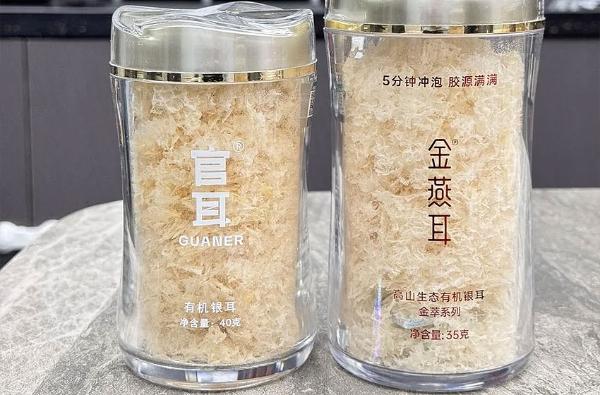 买了金盛耳和金燕耳两个品牌,最早朋友给推荐的金燕耳,所以先买的金燕耳,后来刷到李佳琦直播间的金盛耳觉得很划算,就又屯了两罐金盛耳,
