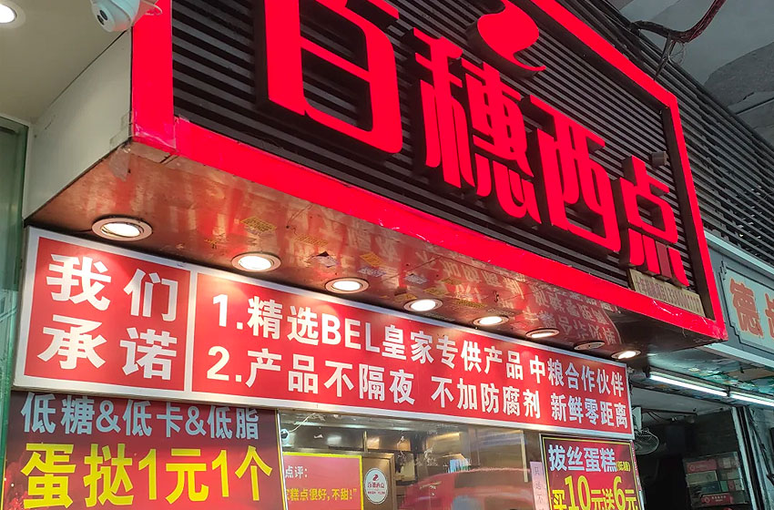 正如老城区里很多老饼铺,百穗虽然名字叫西饼店,却不失中式风格。糕点现做现卖,不卖隔夜,卖完收档。到了四五点爷爷嫲嫲接孙子孙女放学,