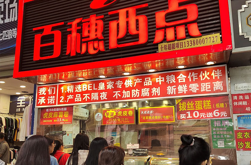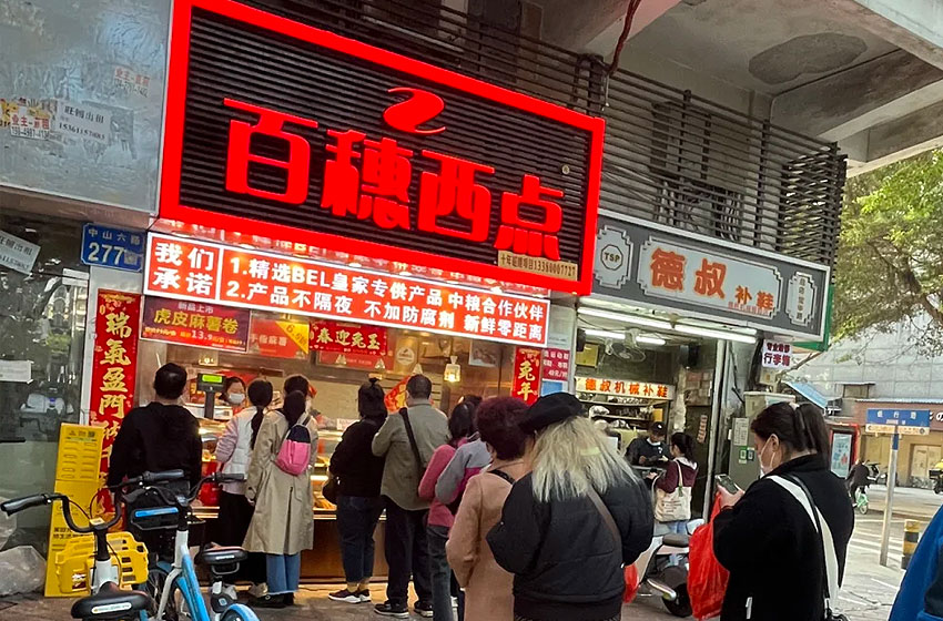百穗西点最火的店好像在北京路,奈何本人时间有限没成行。幸运的是最后一天饭后,竟搜到距离自己很近的百穗西点中山八路分店,便兴冲冲排队
