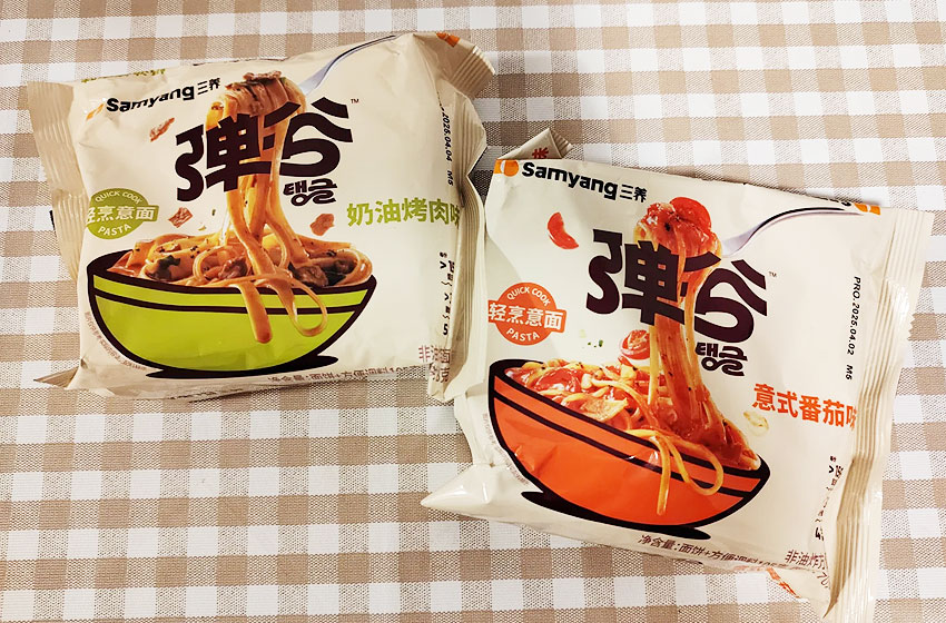 今晚品尝了三养的两款口味弹谷意面新品,分别是奶油烤肉味和意式番茄味。面条选用了弹牙的鸡蛋宽面,挂汁力极强,咀嚼时能感受到麦香与酱汁