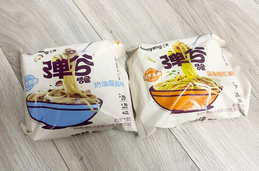 有一些味道总是会没缘由的突然冒出来,想吃意面了,下单了三养的轻烹意面,选择了最爱的奶油蘑菇味和蒜香橄榄油味。先吃蒜香橄榄油味,一份