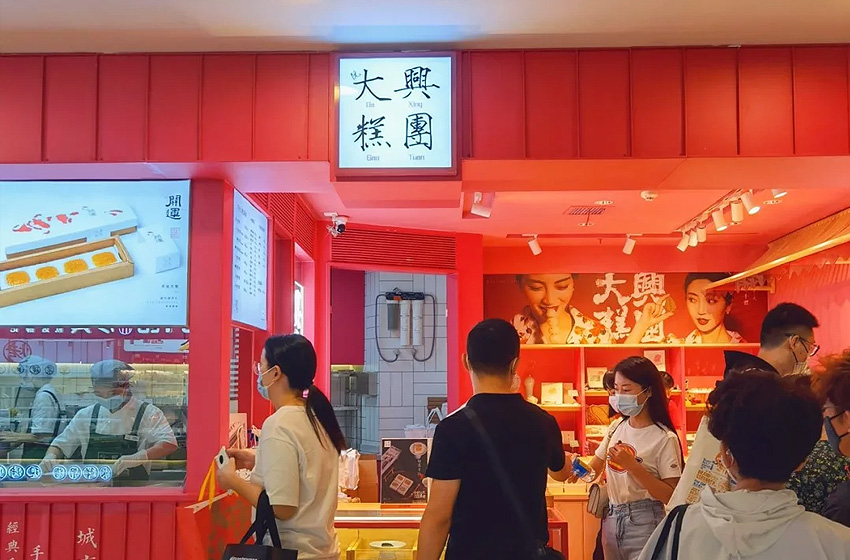 在美食云集的徐汇日月光,竟然隐藏着这么一家店。大兴糕团,这家是纯手工新鲜现做的糕点。透过透明的玻璃橱窗,可以看到里面的师傅制作糕点