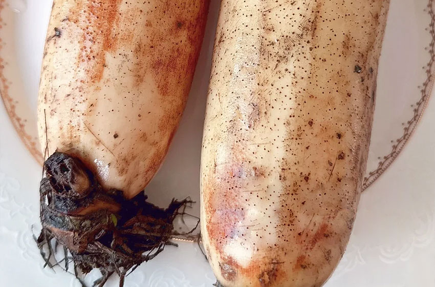 炖藕汤非常简单,只需要洪湖粉藕。第一步:把藕身上的泥巴洗干净,洗净后的藕有各种铁锈红、黑点啥的,不影响。第二步:削皮、去掉藕节,然