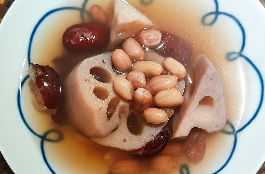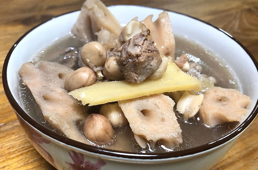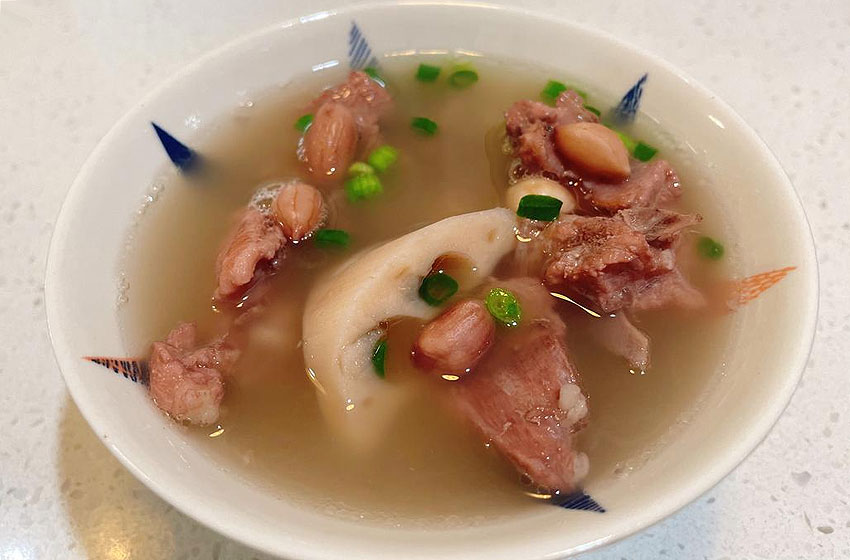 第一次喝这个汤是在一家湘菜馆,但是莲藕排骨汤应该是湖北经典菜吧!这家湘菜馆除了莲藕还放了花生米,汤味更浓了,藕一定要用湖北洪湖粉藕