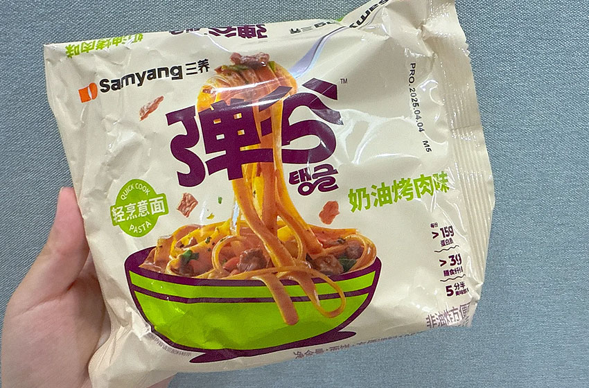 最近试吃了三养两款速食意面。奶油烤肉味堪称惊喜,微甜奶香与烤肉酱咸香交织,味道很像烤肉味薯片,加上奶油的香味,和奶油味火鸡面一样,