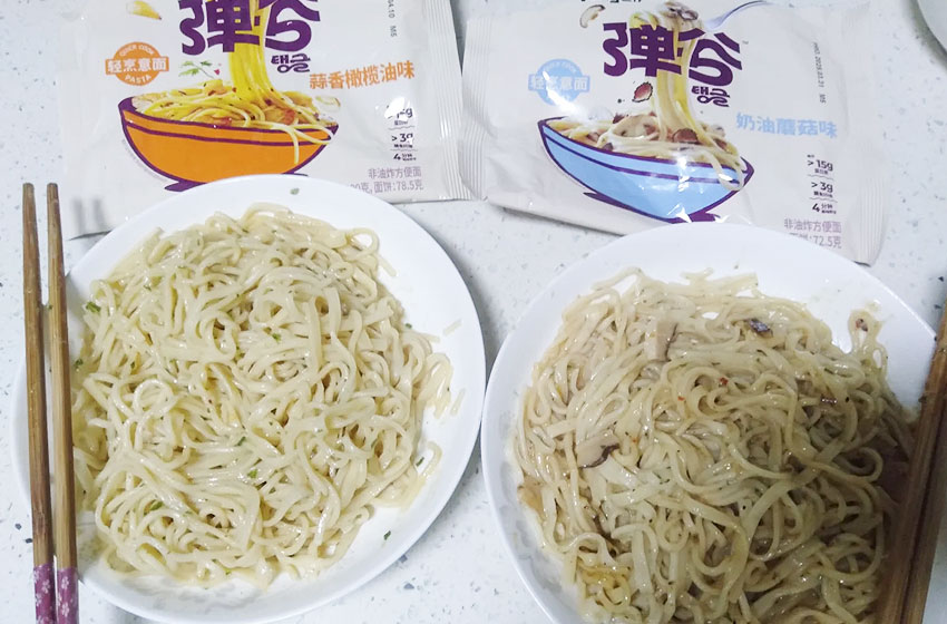 今天测评了两款超级推荐的非油炸,快捷还营养的意面!在晚上追剧的时候想吃东西还胖胖的时候,这两款意面绝对是绝配!三种料包,菜包,粉包