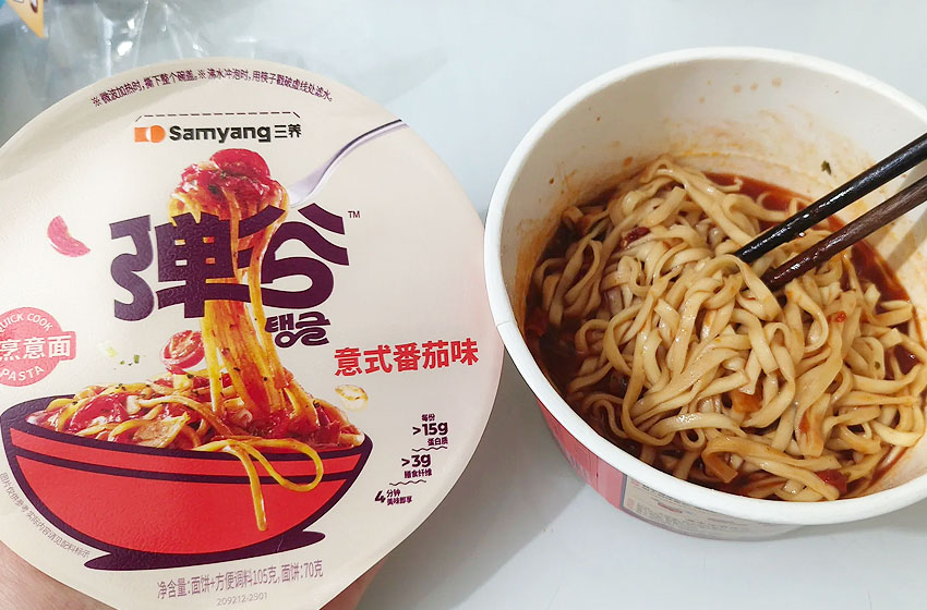 三养新出的弹谷轻烹意面(意式番茄味),真的能代替外卖吗?今天来实测一下这款5分钟速食意面,到底值不值得买?第一印象:包装比普通泡面