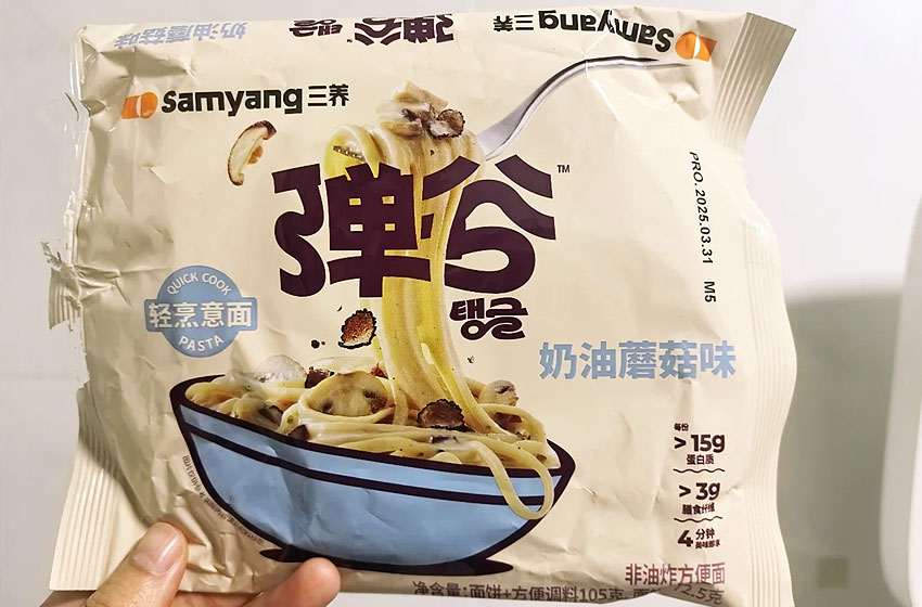 测评一下三养弹谷奶油蘑菇意面,这个面主打热量低,适合健身人士,热量只有外卖1 3。今天吃奶油蘑菇意面,入口是满满的奶香味又很Q弹。浓郁