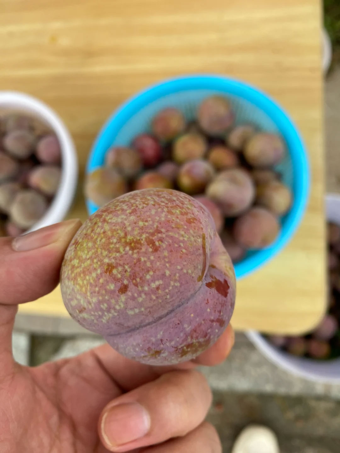 成熟的银妃三华李外观色泽红润光亮,果肉呈诱人的紫红色。最特别的是,果皮表面覆盖着一层薄薄的白色“银粉”(果霜),犹如娇艳动人的古时妃子略施粉黛,因而得名“银妃”。这层银粉是钱排三华李特有的标志,具有天然的保鲜作用。