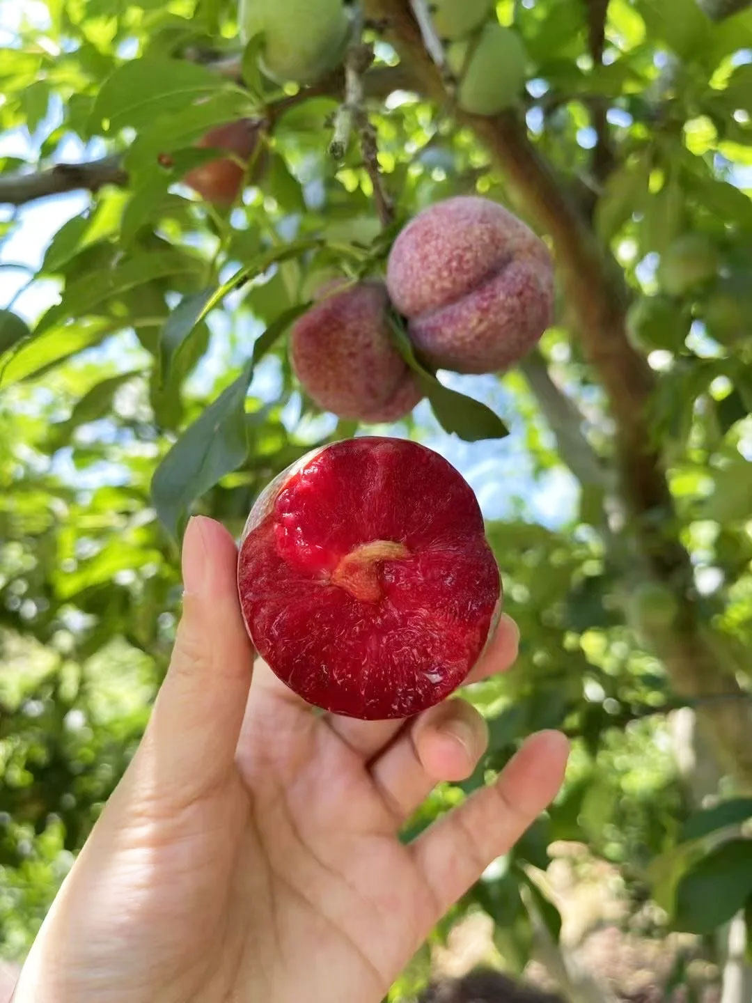 银妃三华李以“肉质爽脆”著称。果肉呈深红色,质地松脆爽口,咀嚼时能感受到明显的清脆感。果核极小,可食率高,每一口都是满满的果肉享受。银妃三华李还散发着独特的果香,这种香气清新自然,带着淡淡的花蜜香。当你咬开果皮的瞬间,清香四溢,沁人心脾。