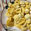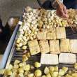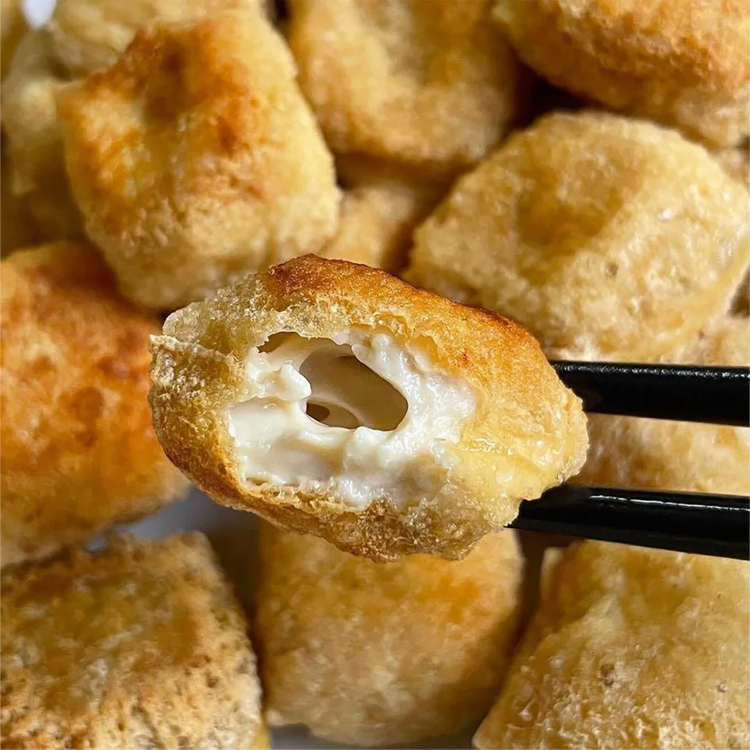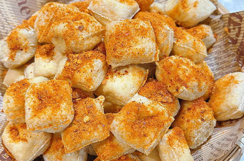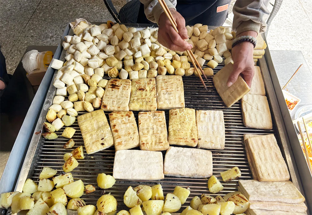 石屏豆腐白如纯玉、细如凝脂、质地细腻。经过特殊工艺的石屏包浆豆腐一口“爆浆”。还没出锅就喷香,焦黄金脆的外皮,内里犹如奶酪般绵密口感。以“白嫩美”形象和口感出圈的石屏包浆豆腐,是烤架上的绝味,也是油锅里的家常,或烤或煎,又或是凉拌皆能成就人间美味。