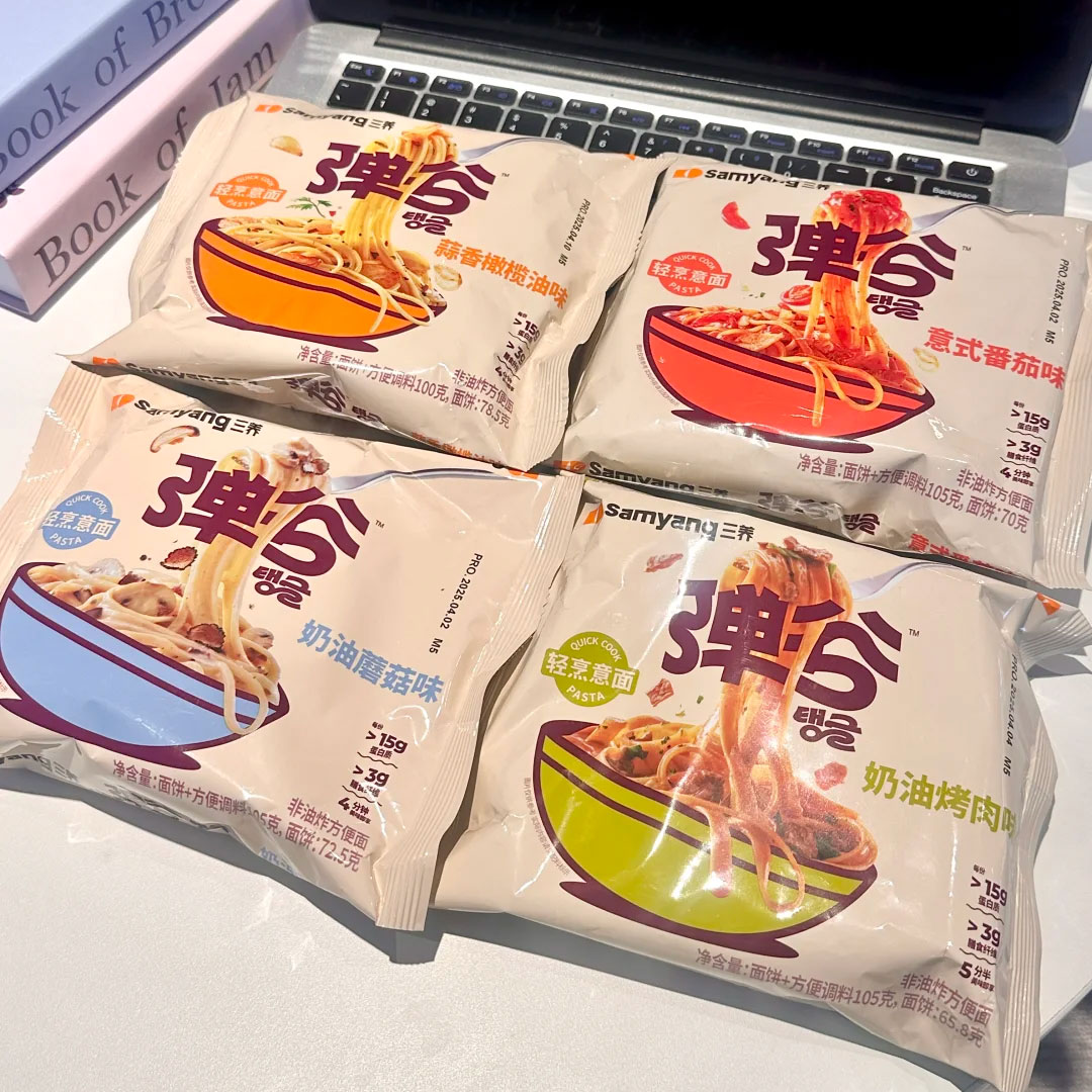 弹谷意面系列是韩国三养食品于2025年推出的首款轻烹意面,以高蛋白、轻卡为核心,采用创新非油炸技术,健康与美味兼得,而且获iSEE全球美味奖/创新奖,推动速食意面进入了轻卡时代。