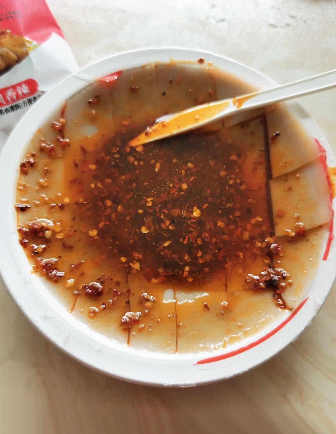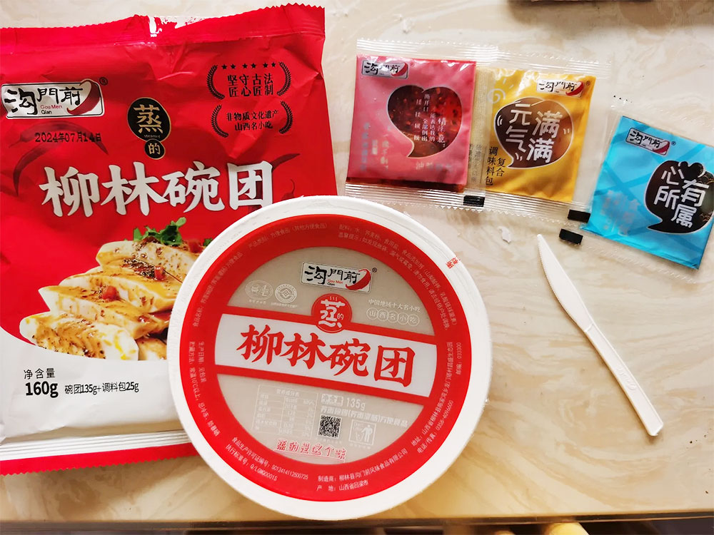 沟门前碗团口感筋道爽滑,QQ 弹弹的,自带的调料包辣椒油巨香不辣,咸香适口。不用复杂加工,拆开包装拌匀就能吃,酸辣开胃,当作宿舍解馋小食或日常加餐都刚刚好。