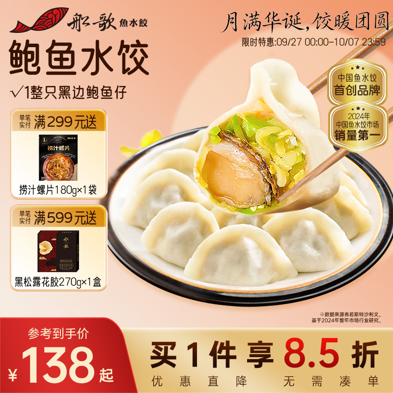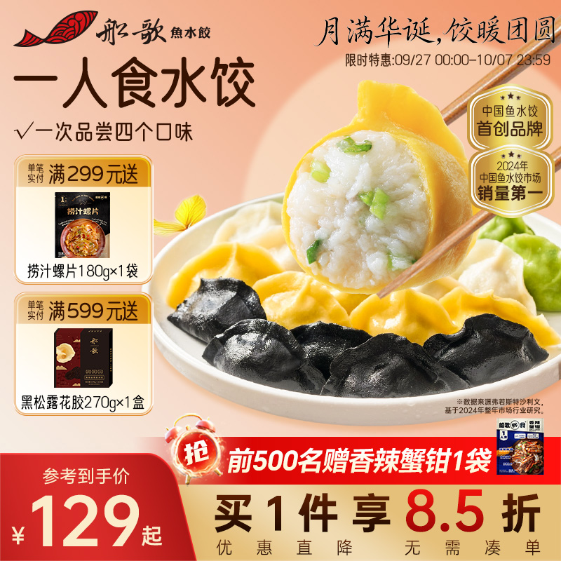 船歌鱼水饺墨鱼鲅鱼水饺速冻海鲜饺子230g*4袋营养早餐蒸煎饺