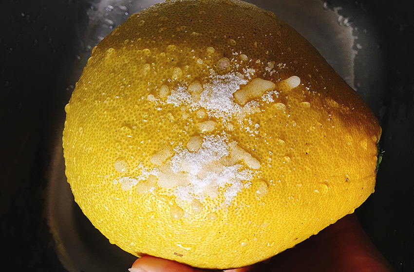 柚子用盐反复搓洗2-3遍,去掉表皮的蜡。