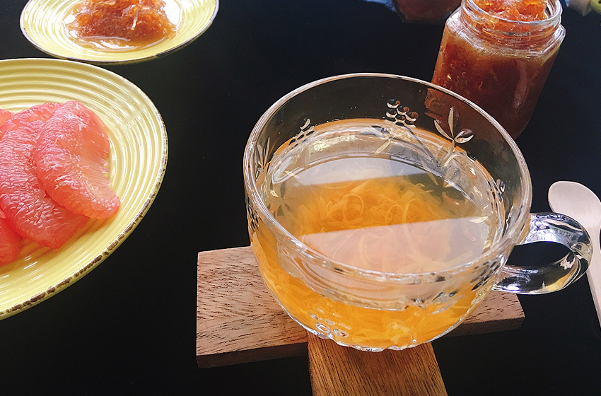 晾凉柚子茶。