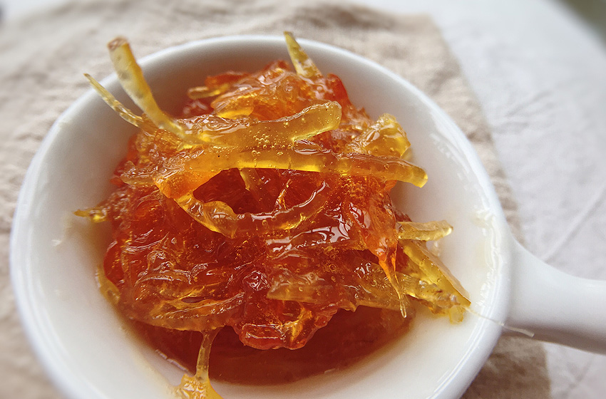 静置24小时,让柚肉和柚皮每个细胞都充分吸收蜂蜜进去。