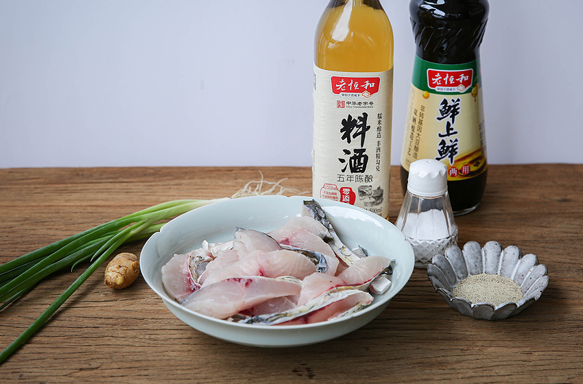 材料:草鱼鱼肉350克、老恒和零添加料酒1匙、老恒和鲜上鲜酱油4匙、葱1根、姜1片、胡椒粉少许、生粉少许、盐适量