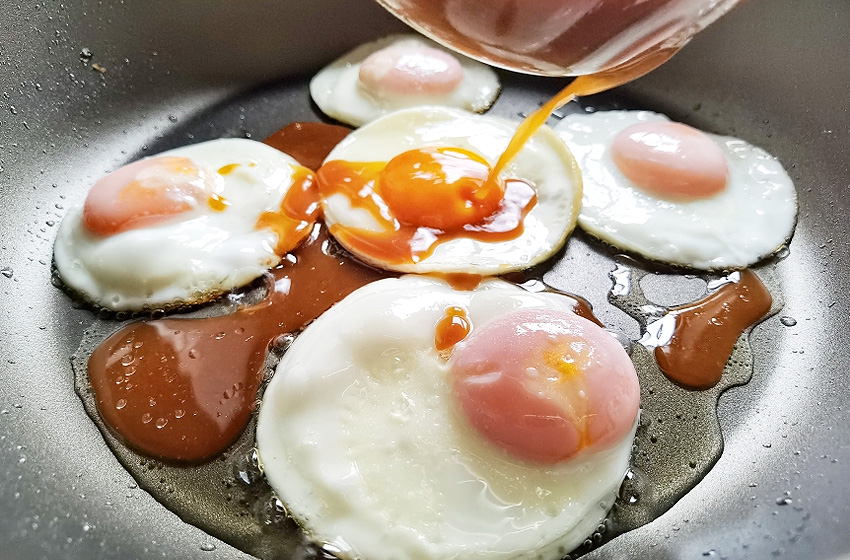 荷包蛋想要好吃,一定不能煎的太老,不然会太干,当黄还噎人。要那种流心的才好吃,半熟溏心的那种才美味。但是半熟的鸡蛋可能会有细菌,弄不好吃了还会拉肚子,所以我们家一直吃的是达到日本可生食标准的黄天鹅鸡蛋,它完全不含沙门氏菌,做半熟流心的鸡蛋也没有蛋腥味,可以放心大胆的做溏心蛋,用筷子轻戳就看得见的流心,真是让人食欲满满!