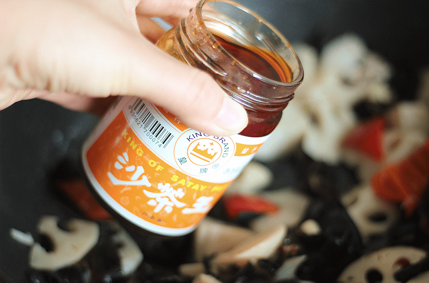 加入一大勺的皇牌沙茶王,翻炒均匀如果觉得太干,可以往锅中喷入少量的水。