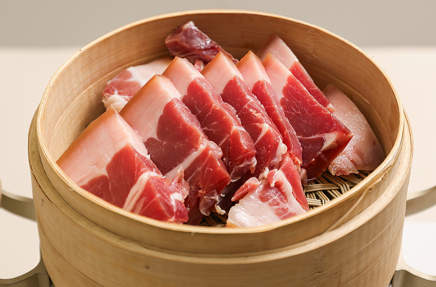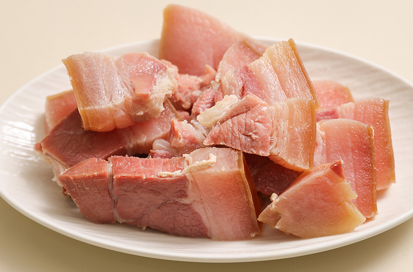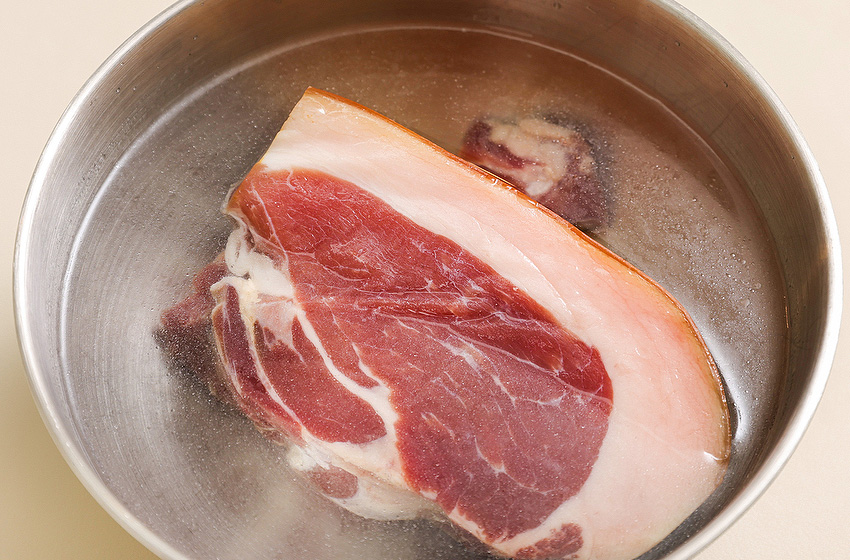 宣威火腿洗干净,放在清水中浸泡1小时,去除部分咸味。