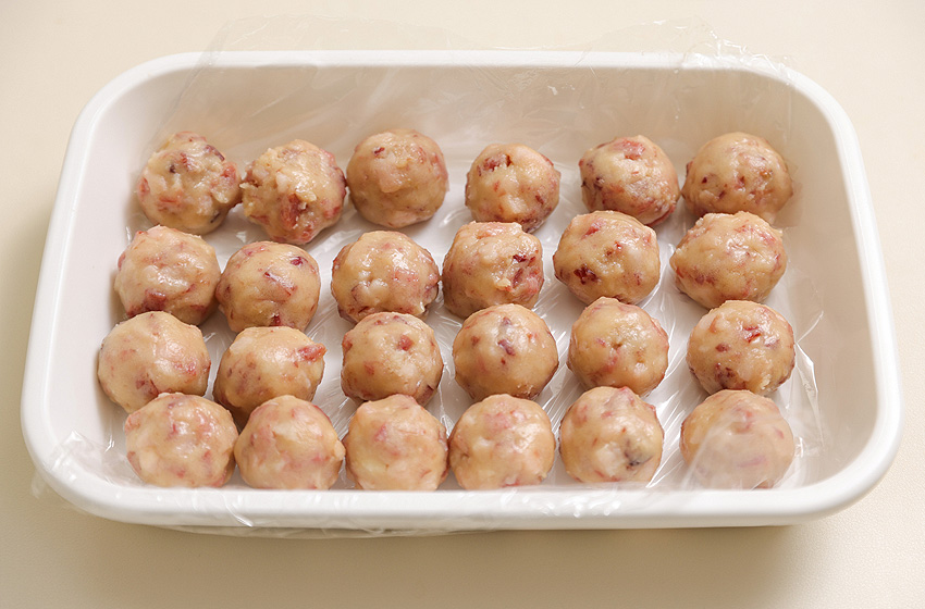 分成35g每个的馅儿,放入冰箱冷藏备用。