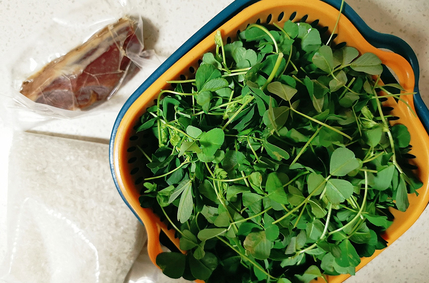 正是吃草头的季节,冰箱里还有一块火腿肉,单吃太咸了,咱做个火腿草头饭试试,没想到真的很好吃啊!