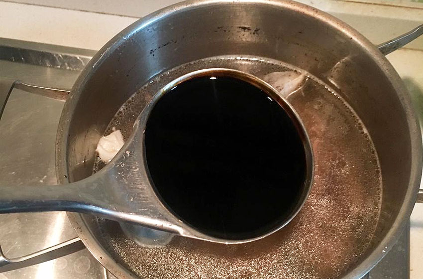 汤和过滤好的牛肉汤放回洗好的锅,加酱油。金兰写明是酱油比水1:3。原版是100ml老抽+100ml生抽。