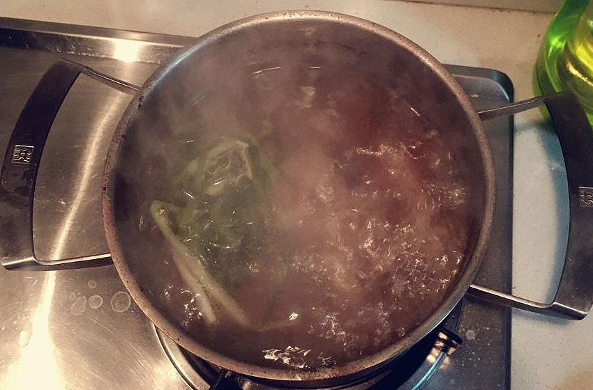 炖好的汤过滤,之后还有直接卤牛肉,所以之前一次性要加够水。沸腾不溢出就好。原版用的可水洗一次性厨房纸巾过滤的,我手边没有,就用普通筛子,沉底的小血沫到时候手动撇。