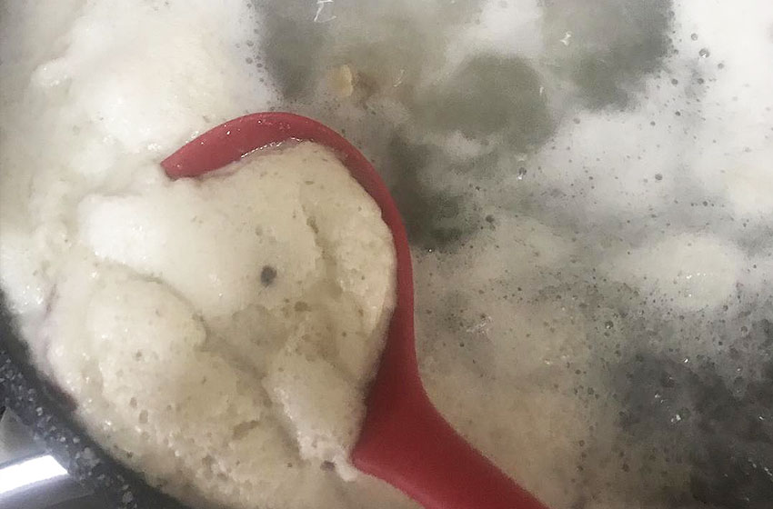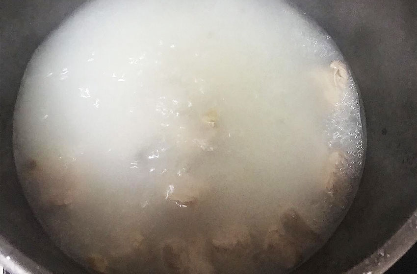 关火,撇去浮沫,这个就是油脂,不弄出去会很油腻。
