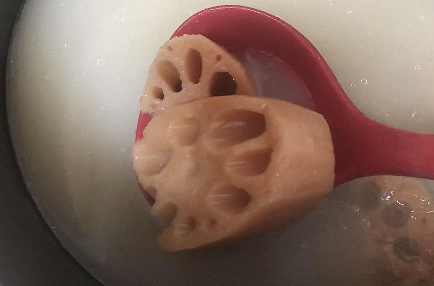 2、如果自己买的藕,下锅前要用盐水泡,不然会氧化变黑。