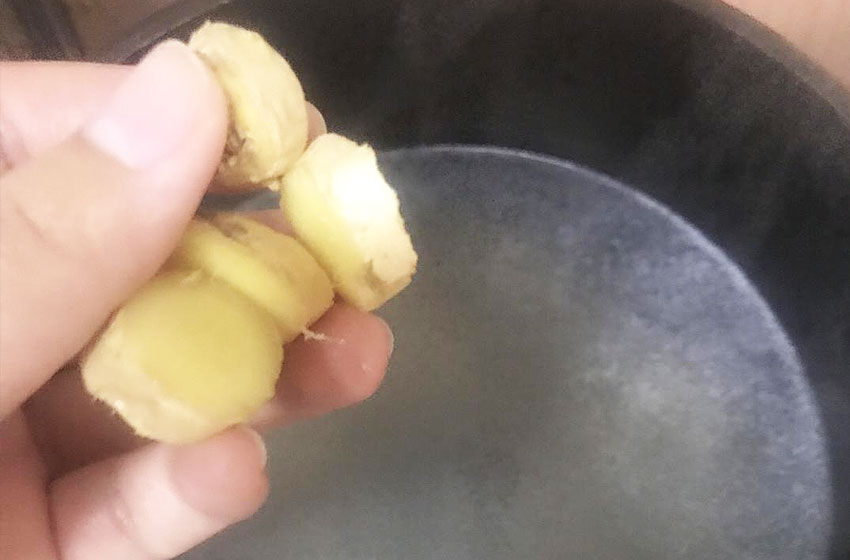 锅烧热,将排骨洗净倒入锅中翻炒(不用放油),炒到肉变色收紧。