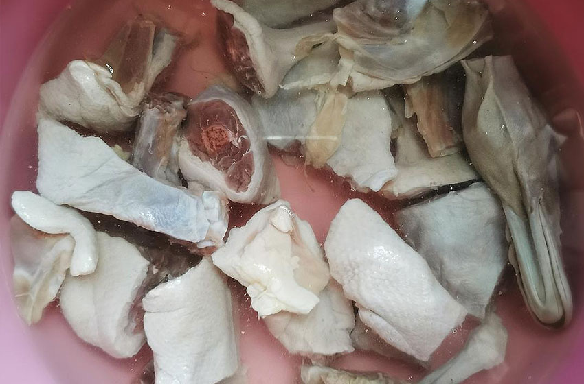 腊鸭一只切块,用清水浸泡四个小时以上。