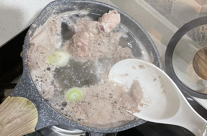 水开撇去浮沫,煮到没有浮沫,这样后面炖的汤更清澈。