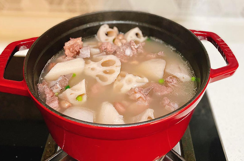 第一次喝这个汤是在一家湘菜馆,但是莲藕排骨汤应该是湖北经典菜吧!这家湘菜馆除了莲藕还放了花生米,汤味更浓了,藕一定要用湖北洪湖粉藕,炖出来软糯,汤也鲜甜。