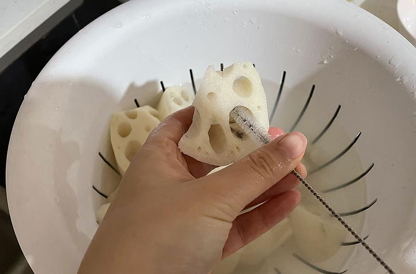 这个藕里面泥挺多的……为了洗干净,我用了平时洗吸管的刷子……好拼。大家都是怎么处理藕里的泥的呢?