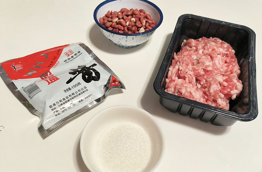 花生、猪肉馅(3肥7瘦)、昭通酱、白糖。