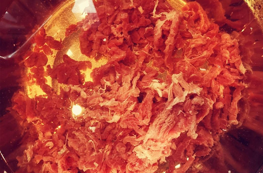 油锅下油200克烧热,这里的油可以在150-300克的范围调整,主要看你对肉酱的油分要求。