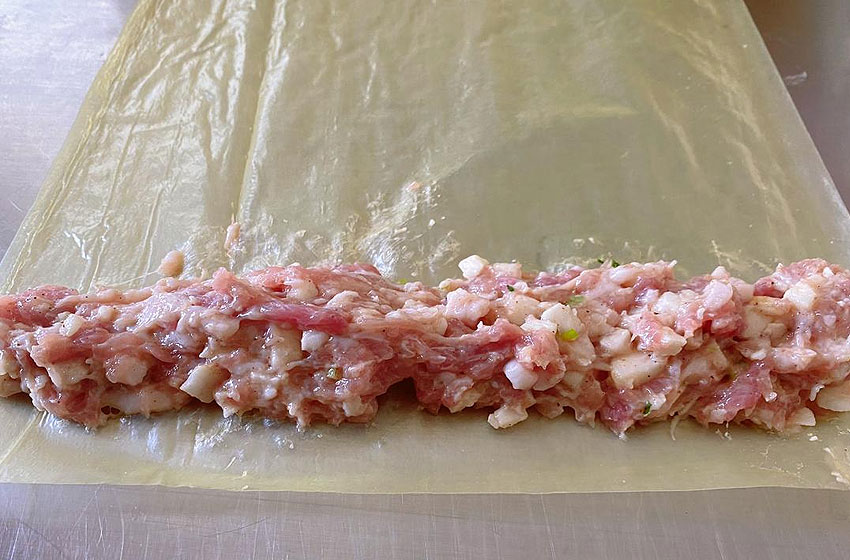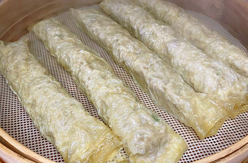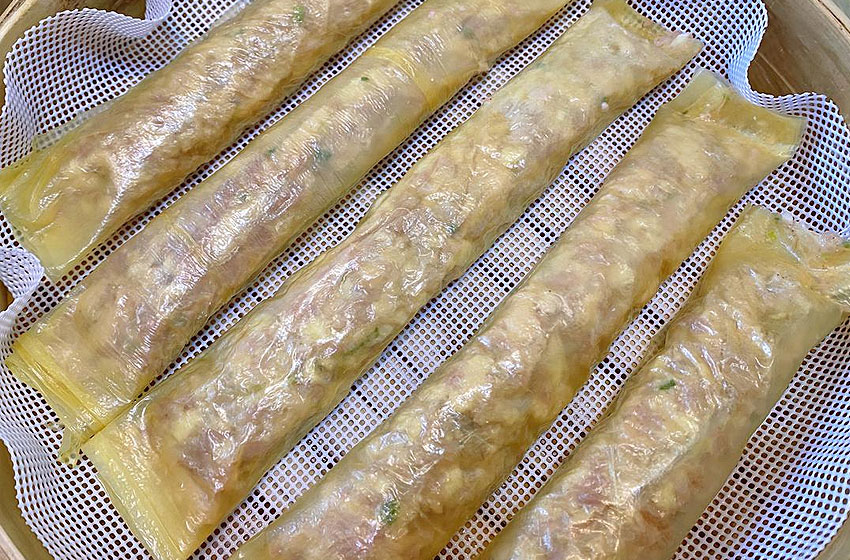 蒸好的粿肉卷。这个状态可以真空后放冰箱冷冻储存。想要吃的时候拿出来炸一下即可。