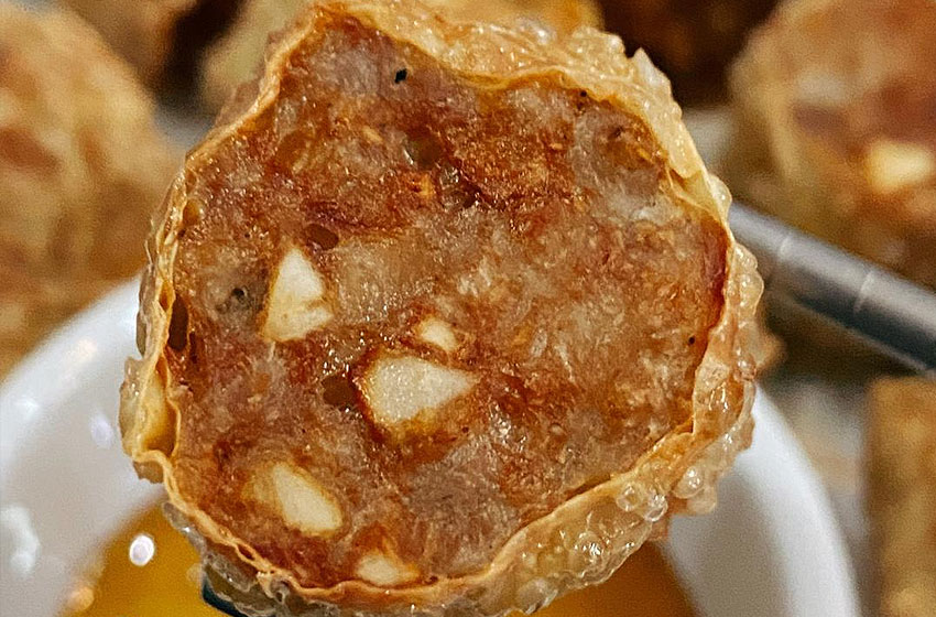 潮汕腐竹膜炸粿肉,属于“未见其物,先闻其香”潮汕系列炸物之一。