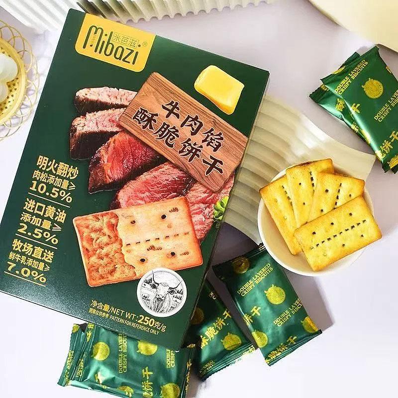 米芭滋牛肉馅酥脆饼干是山姆同款平替饼干,其口味突破了传统饼干的甜味局限,开创了咸味饼干的新领域。它并非普通意义上的夹心饼干,而是将牛肉风味完美融入饼干本身,带来了全新的味蕾体验。